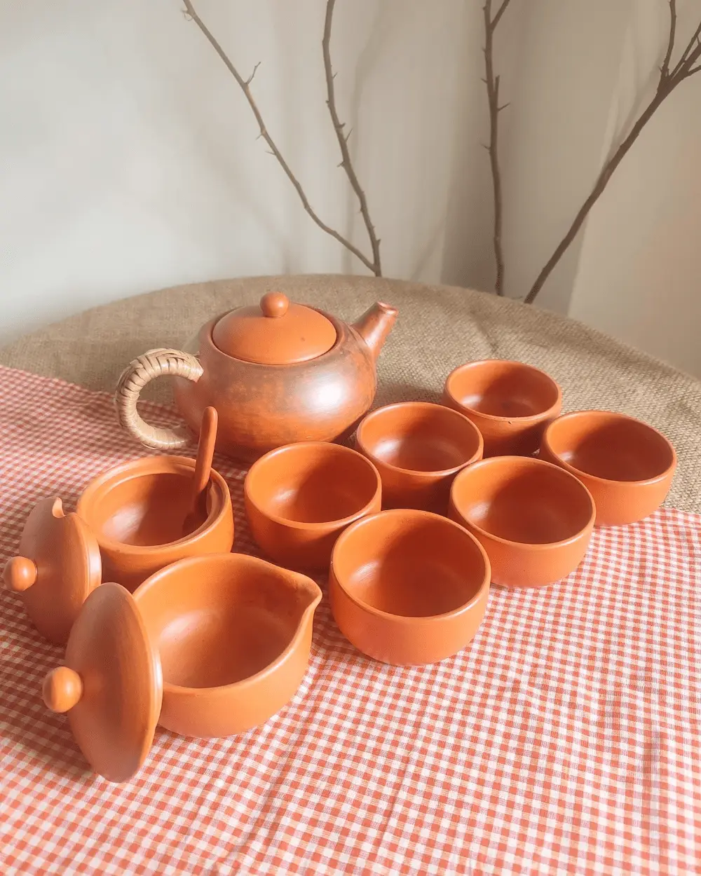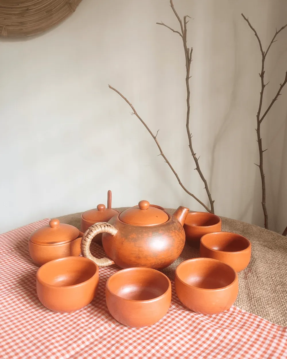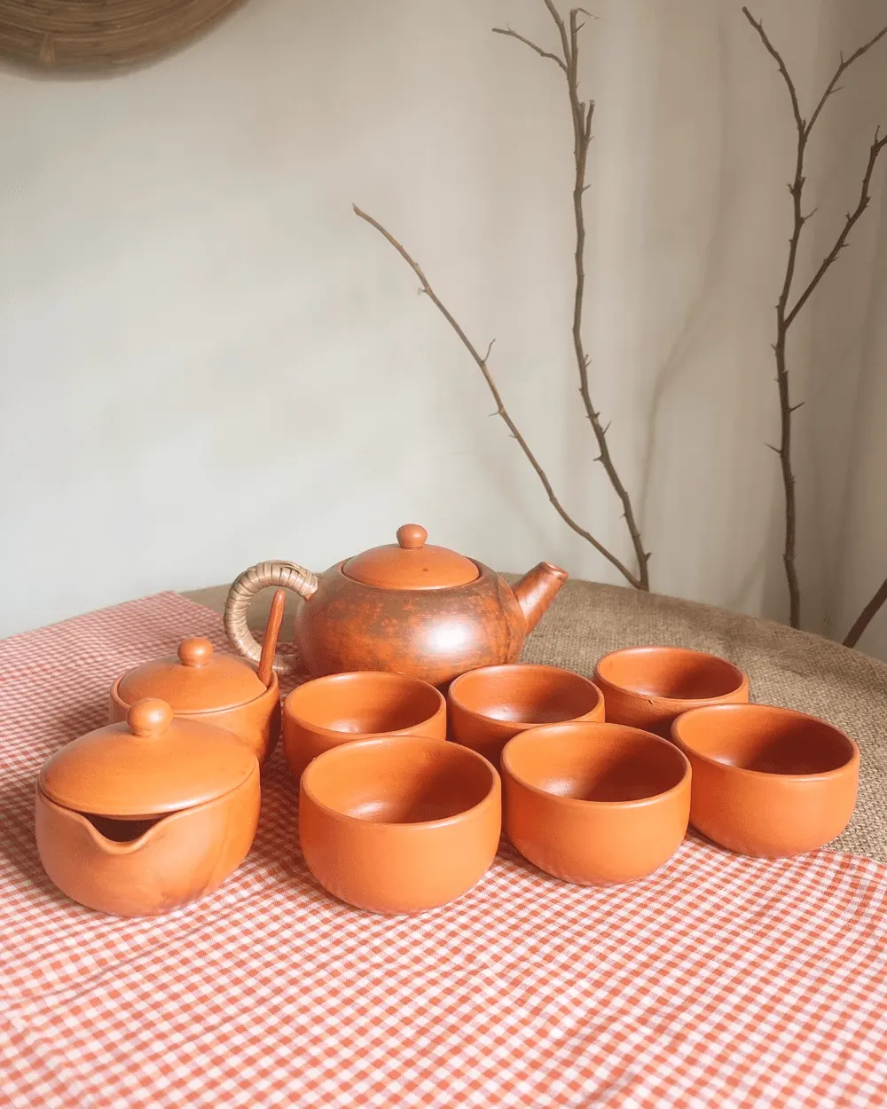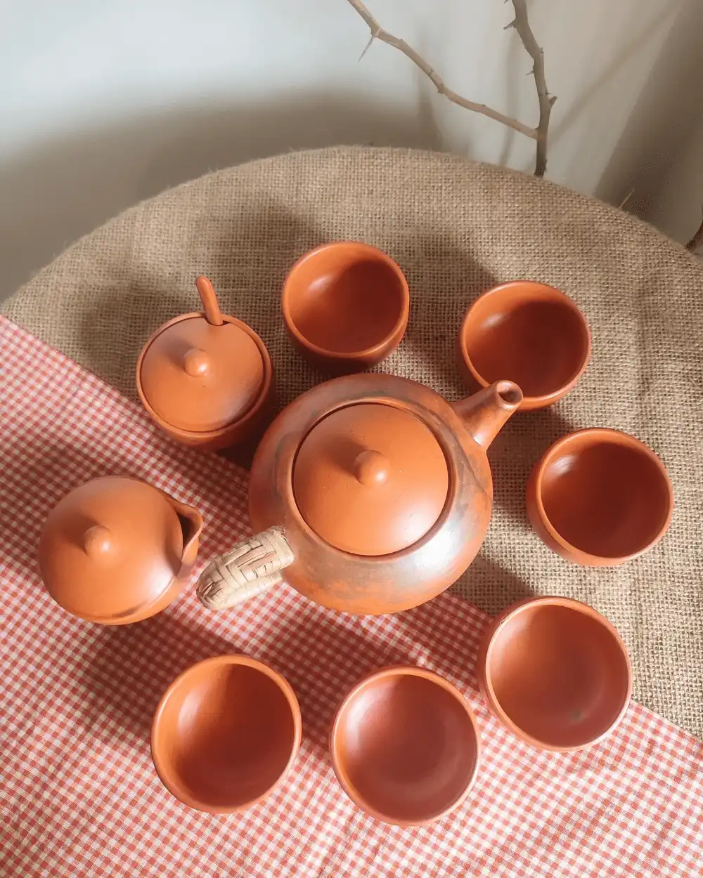 #DeshiTeaRitualSet #TerracottaTeaSet #HandcraftedServeware #BangladeshiCraftsmanship #EcoFriendlyDining